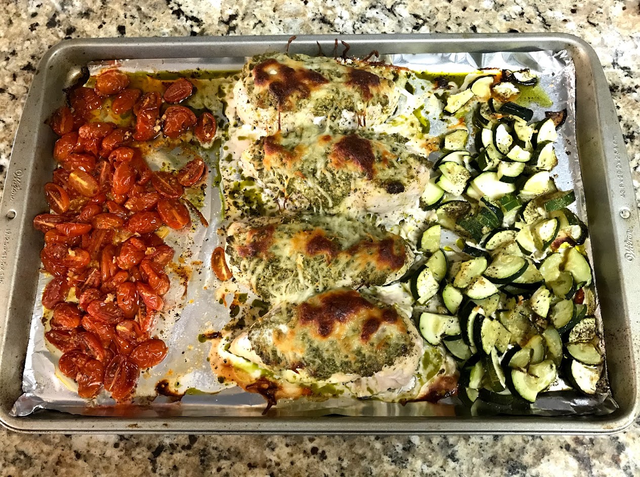 I am always looking for fast and easy recipes to make for dinner. This one was tasty and fit the bill for fast and easy. I’ve made some tweaks, as I usually do, and have made it twice for dinner. The first time, I made the dish in a sheet pan (as pictured) and put everything together. It was good, but I felt the chicken lacked some flavor potential. The second time, I diced up the chicken and made it as described below. Try it out and let me know how you enjoy it!