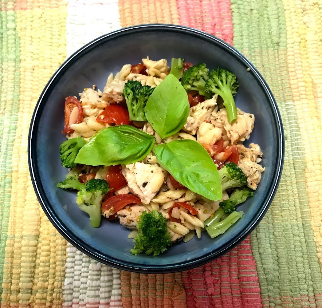 5. In large bowl, combine orzo, chicken and tomatoes.