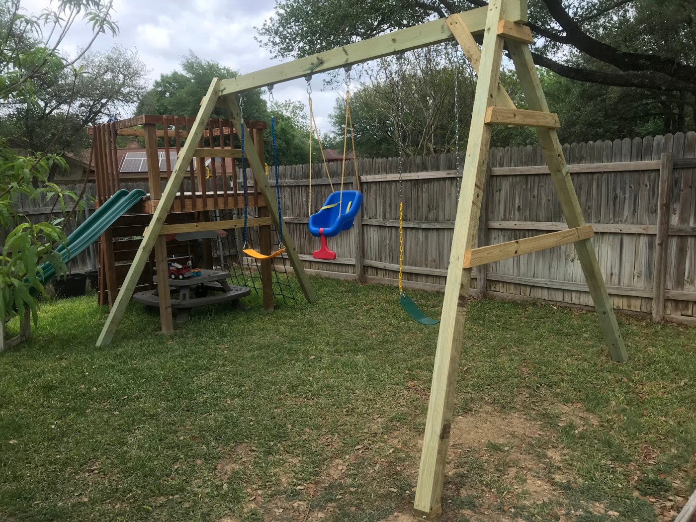 Mike and I decided to build an A frame swing set in the back yard. My parents had come over to help with the boys and assembly. We started early Sunday morning and we hoped to have it completed by the time the boys woke up from their nap. The weather was nice and we were all enjoying the time together. Everything for the swing set was going well and as planned. The boys went down for their nap and it was time to assemble all the pieces together. My mom and I were holding one side of the A frame. The top 4×6 beam was resting on our side of the A frame. My dad and Mike were carrying the other side and all of a sudden, BAM, I was hit on the head and back. I wasn’t too sure what happened, but I stood still and heard my parents and Mike rushing over to me and saying “Oh no!”. Quickly, they lifted the beam off me and my parents told Mike to get towels. Drip, drip, drip….”hmm that can’t be good, I thought to myself.” I was bleeding and I assumed it was from the impact my head took from the beam. They walked me over to a chair and quickly applied pressure and ice. One of our amazing neighbors is a PA; she came and helped asses how bad it was. I stayed calm and tried to assess how I was feeling. Overall, I felt okay and in good spirits. Just a little freaked out about the amount of blood coming from my head. Our neighbor told us to go to the ER and that my parents and Mike had done a great job stopping the bleeding. Mike and I left the sleeping boys with my parents and off to the ER we headed. Now, fast forwarding the day, I walked out of the ER with good CT results and two staples holding my head together. The doctor didn’t even numb the site. He just washed it out and stapled me up.